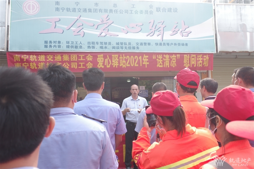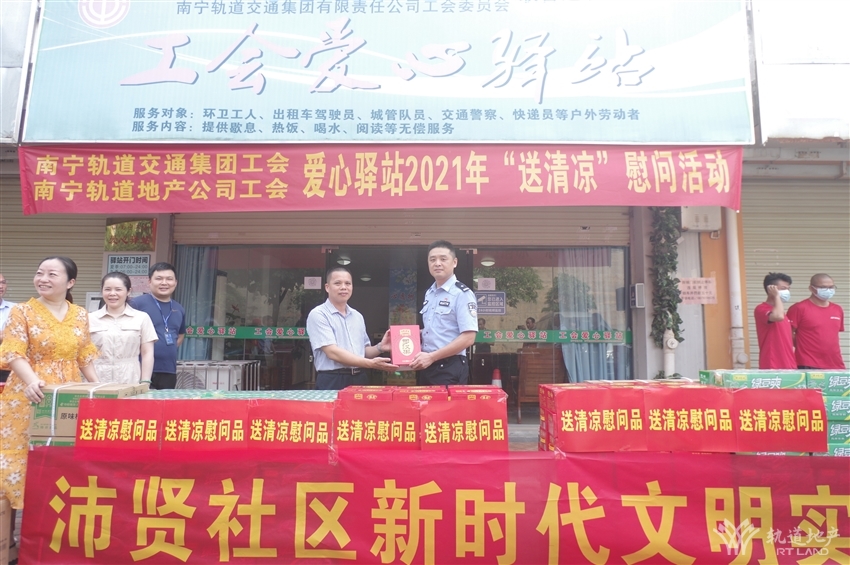 近日,持續(xù)高溫天氣給堅(jiān)守一線的戶外工作者帶來嚴(yán)峻“烤”驗(yàn),為積極推進(jìn)“我為群眾辦實(shí)事”實(shí)踐活動(dòng)走深走實(shí),9月10日上午,由南寧軌道交通集團(tuán)工會(huì)、南寧軌道地產(chǎn)集團(tuán)工會(huì)牽頭,攜同南寧軌道城市發(fā)展公司工會(huì)、軌道地產(chǎn)物業(yè)公司工會(huì)及那洪街道黨工委、沛賢社區(qū)在金凱路沛友巷工會(huì)愛心驛站組織開展“送清涼”慰問活動(dòng),南寧市總工會(huì)技協(xié)辦副主任阮杰,經(jīng)開區(qū)工會(huì)工委副主任易蘭新,交警十大隊(duì)教導(dǎo)員駱明等同志出席活動(dòng)。