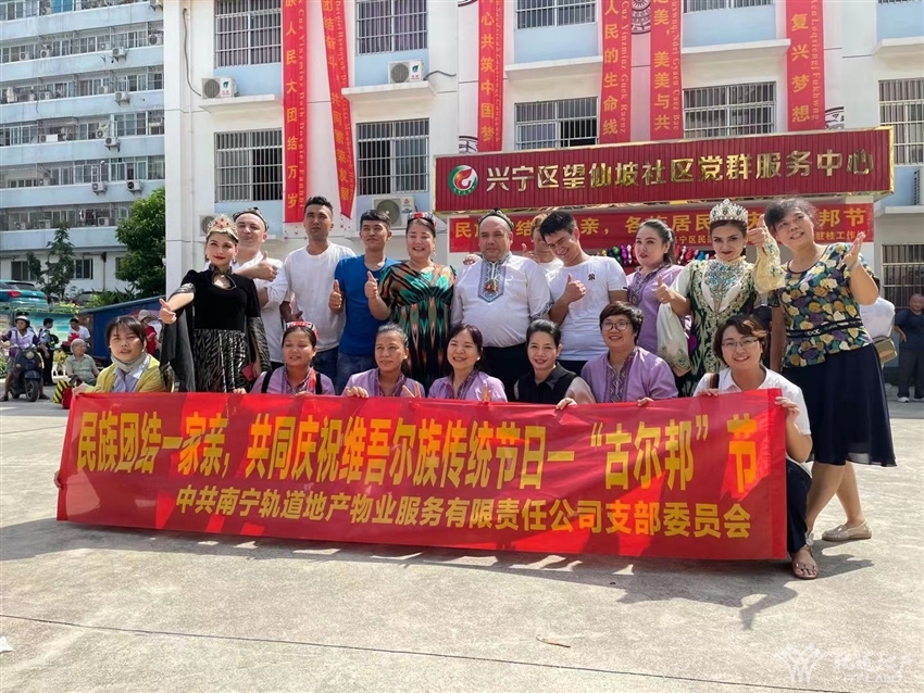 為弘揚民族文化,促進民族團結(jié),鑄牢中華民族共同體意識,結(jié)合中國共產(chǎn)黨成立一百周年的契機,望仙坡社區(qū)、新疆駐桂工作組、興寧區(qū)民宗局于2021715日上午在望仙坡社區(qū)廣場開展古爾邦節(jié)民族文化宣傳活動,軌道地產(chǎn)物業(yè)公司黨支部作為黨建聯(lián)盟單位,受邀參加此次活動,與各族群眾一起共同慶祝維吾爾族傳統(tǒng)節(jié)日--“古爾邦”節(jié)。