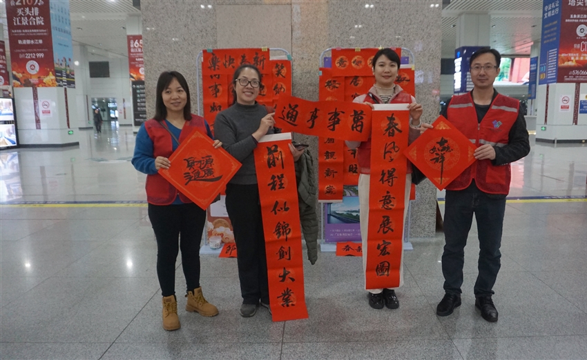 1月23日上午軌道地產(chǎn)建筑公司黨支部與南湖街道屯里社區(qū)黨總支攜手,南寧火車東站南廣場(chǎng)開展一場(chǎng)別開生面的送春聯(lián)、贈(zèng)福字活動(dòng)社區(qū)黨員與企業(yè)黨員志愿者積極參與,為奔波在春運(yùn)途中的人們送去滿滿溫暖與新春祝福。