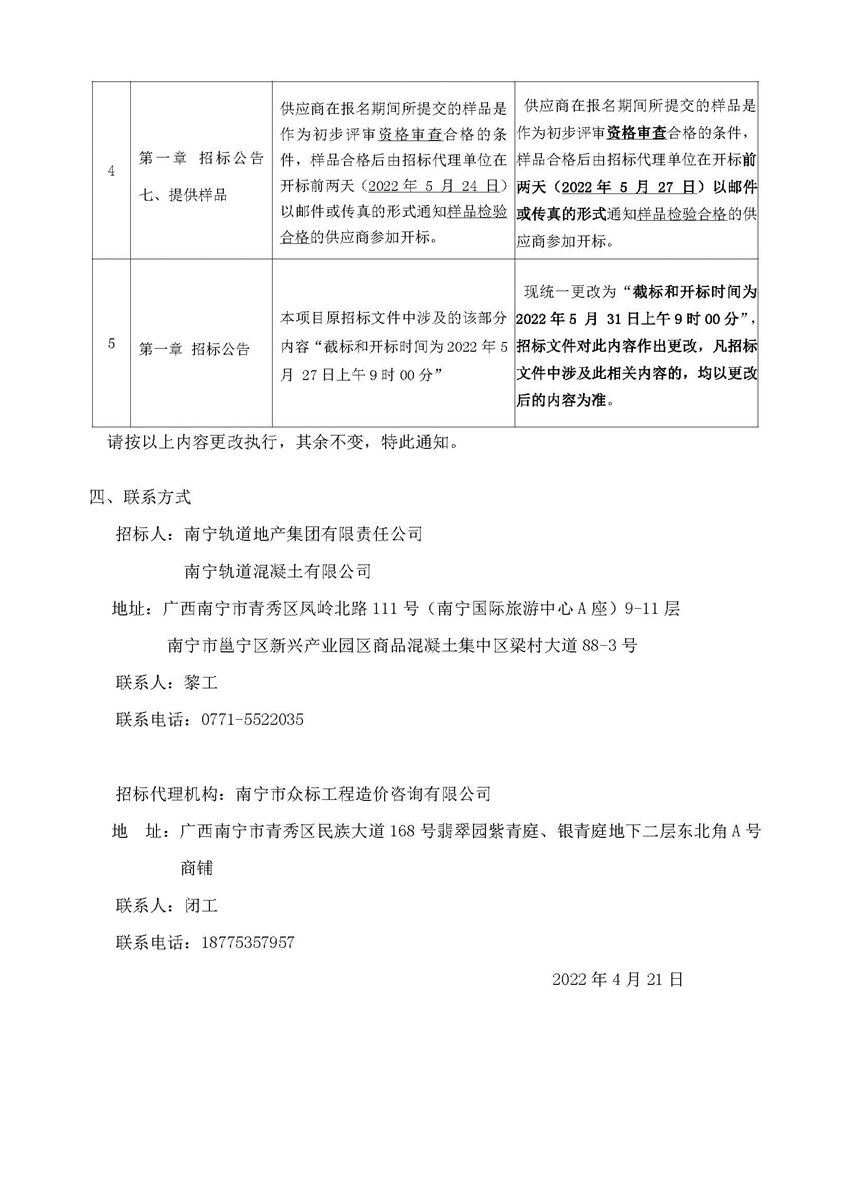 南寧軌道混凝土有限公司生產(chǎn)原材料招標招標文件澄清通知(一)